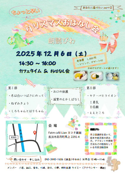 【びわまちセン】ちょっと早い「クリスマスおはなし会」朗読びわ のお知らせ