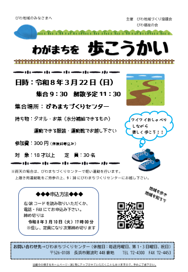 【びわ地協】【びわ福祉の会】3/22わがまちを歩こうかい開催のお知らせ