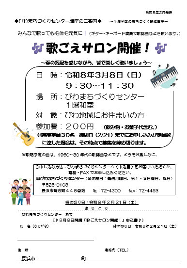 【まちセン講座】3/8 歌声サロン開催のお知らせ