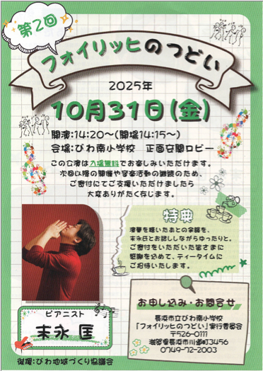 【びわ地協】第2回フォイリッヒのつどい(びわ南小学校)のお知らせ