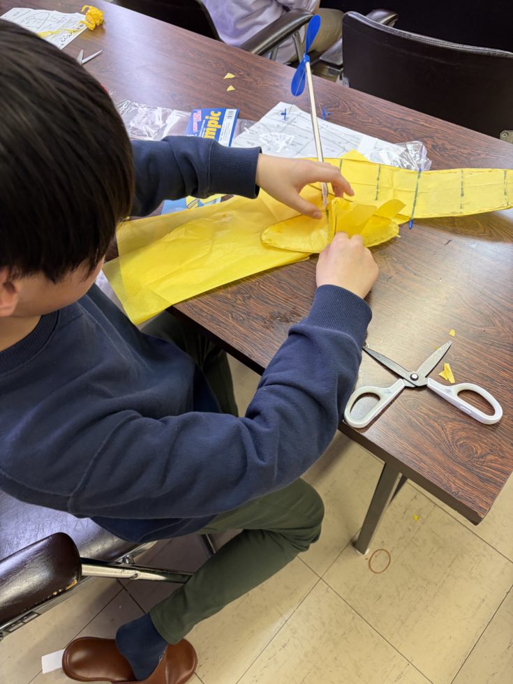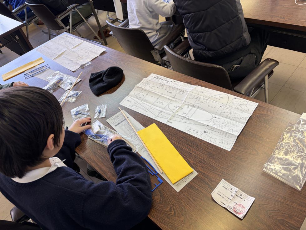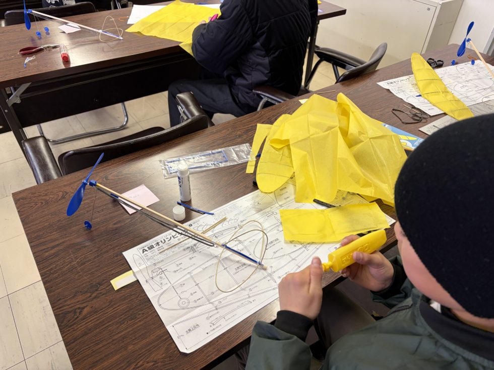 2日目25日は、主翼・尾翼に紙を貼って完成です。