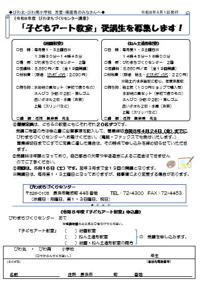 【まちセン講座】「子どもアート教室」受講生を募集します!!